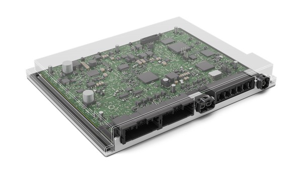 The Schaeffler 2in1 electric axle system can be expanded into the Schaeffler 3in1 electric axle system by integrating a power electronics unit. The power electronics contain the system’s intelligence and are primarily used to control the drive. Furthermore, the power electronics control the actuation of actuator output stages such as the decoupling, gear selector, or parking lock functions.